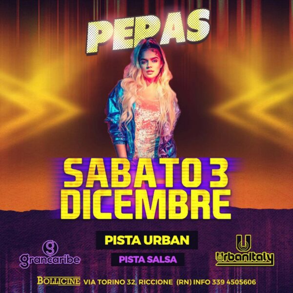 Bollicine Riccione presenta Pepas. L'evento in programma per Sabato 03 Dicembre 2022 presso Bollicine Disco, Via Torino, 32, 47838, Riccione, RN. La discoteca propone i seguenti generi musicali: Musica Commerciale, Musica Hip hop, Musica Latino. Puoi entrare dalle ore e possono partecipare le persone almeno di età. Prima di acquistare il biglietto online controlla sempre le condizioni d'ingresso.