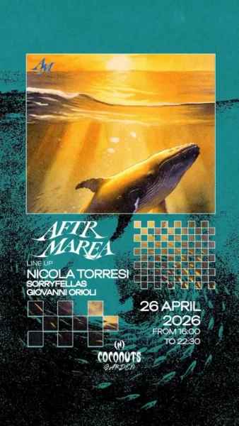 Il 26 aprile 2026 AfterMarea arriva al Coconuts per l’evento “AFTR MAREA 6”. Dalle 16:00 alle 22:30, il Coconuts Garden ospita una festa indimenticabile ricca di musica elettronica.