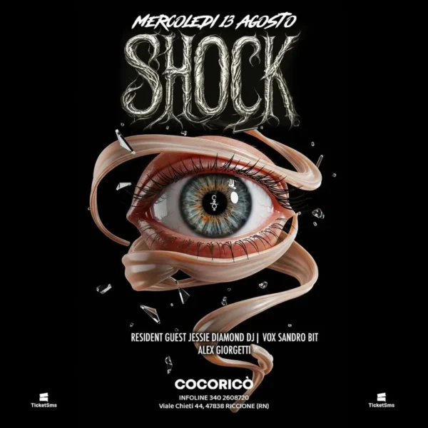 Gli ospiti in programma per la serata Shock al Cocorico Riccione 13 agosto 2025 sono: