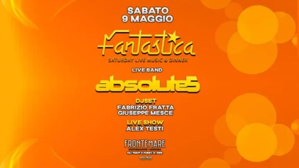 Mettini in lista per l'evento Absolute5 al Frontemare 09 maggio 2026. Scrivi il tuo nome e in quanti siete. Il Pagamento avviente direttamente in cassa.