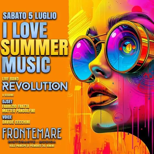 Un’onda di musica e divertimento sta per travolgere la riviera. Il 05 luglio 2025, il Frontemare di Rimini si trasforma nel palcoscenico di un evento straordinario: I love Summer Music. Una serata che unisce un concerto dal vivo, un diner show esclusivo e un DJ set esplosivo. L’energia della band Revelution e le selezioni di Fabrizio Fratta e Matteo Pandolfini ti aspettano.