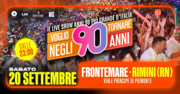 Un’onda di energia sta per travolgere la Riviera! Il 20 settembre 2025, la notte di Rimini si accende con l’evento più atteso: Voglio Tornare Negli Anni 90 sbarca al Frontemare.