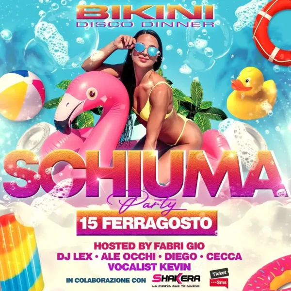 Ti attende un’esperienza fuori dal comune al Bikini Cattolica per il Ferragosto! Lasciati coinvolgere dalla magia dello Schiuma Party, un evento unico in cui la schiuma, la musica e l’energia si fondono in un turbine di emozioni. Presso la spettacolare location del Bikini Cattolica, situato sulla spiaggia di Cattolica con vista panoramica sul mare, la serata prende vita con ospiti speciali, tra cui: Fabri Gio, Lex, Ale Occhi, Diego e Cecca.