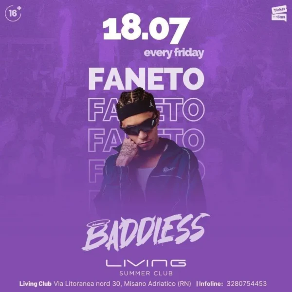 Gli ospiti in programma per la serata Baddiess al Living Disco 18 luglio 2025 sono: