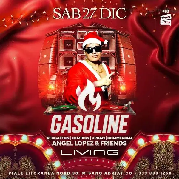 Richiedi le prevendite cartacee per l'evento Gasoline al Living Disco 27 dicembre 2025. Contattaci e ti portiamo la prevendita ovunque ti trovi in Riviera.