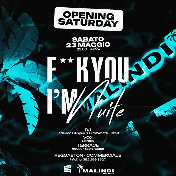 Saturday Night al Malindi Biky Beach 23 maggio 2026. Ticket Tavoli