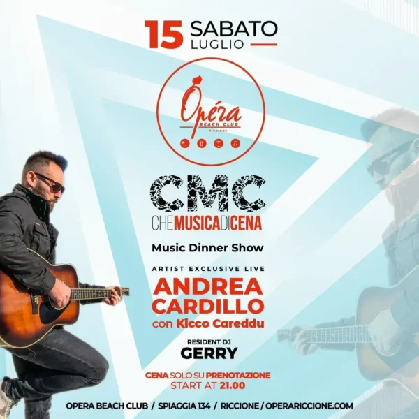 Andrea Cardillo non è solo un musicista talentuoso. È un vero e proprio artista che riesce a creare connessioni emozionali con il suo pubblico attraverso le sue melodie avvolgenti e le sue performance magnetiche. La sua presenza sul palco dello splendido Opera Beach Club sarà come un potente faro che attira gli appassionati di musica da tutte le parti della Riviera Romagnola.