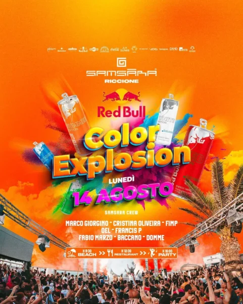 Lunedì 14 agosto 2023, presso il celebre Samsara Beach di Riccione, si terrà l’evento “Color Explosion”. Un’esplosione di colori, divertimento e un’atmosfera festosa senza precedenti. Durante la serata, i partecipanti avranno l’opportunità di immergersi in un’esperienza unica, caratterizzata dall’uso di polveri colorate che verranno lanciate nell’aria, creando uno spettacolo cromatico mozzafiato.