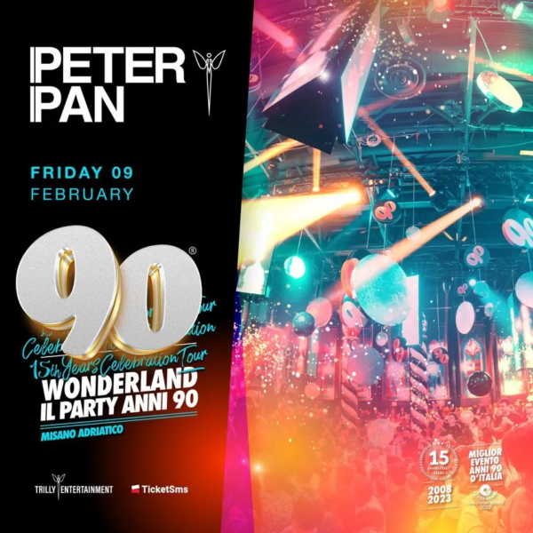 Sei pronto a immergerti nella magia degli anni 90? Lasciati travolgente dall’energia degli anni ’90 con 90 Wonderland al Peter Pan Riccione. Venerdì 9 febbraio 2024, presso la leggendaria discoteca di Riccione, Peter Pan Club preparati per il party anni 90 più epico d’Italia: 90 Wonderland.