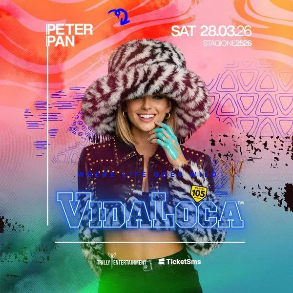 Peter Pan Riccione presenta Vida loca. L'evento in programma per Sabato 28 Marzo 2026 presso Peter Pan Club, Via Scacciano, 161, 47843, Misano Monte, RN. La discoteca propone i seguenti generi musicali: Musica Commerciale, Musica Hip hop, Musica House. I ticket per Vida loca al Peter Pan Riccione partono da € 20. Puoi entrare dalle ore 23:30:00 e possono partecipare le persone almeno Over18 di età. Prima di acquistare il biglietto online controlla sempre le condizioni d'ingresso.