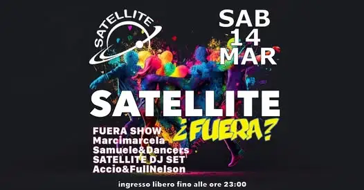 Mettini in lista per l'evento Fuera Show al Satellite 14 marzo 2026. Scrivi il tuo nome e in quanti siete. Il Pagamento avviente direttamente in cassa.
