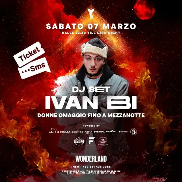 Acquista i biglietti online per l'evento Ivan Bi al Wonderland Club 07 marzo 2026. Ricevi il biglietto digitale direttamente sul tuo telefono ed entra senza fare la fila!